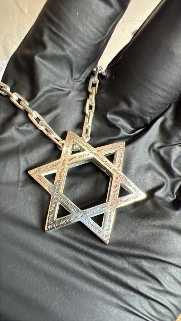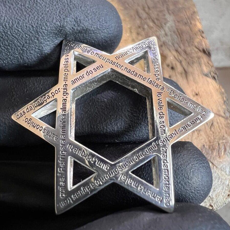 Pingente estrela de Davi + salmo23 (gravado em ambos os lados)